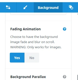 The below information may be outdated with Avada 7.15.2. I noticed when I was setting a container image that there is now a Fading Animation toggle. This allows the background to blur and content over the background to display without blur.